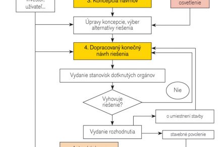 - oboznámiť okolitých vlastníkov so zámerom výstavby (potenciálnych účastníkov územného konania) a zdokumetovať ich požiadavky; túto časť analýzy je vhodné riešiť za spoluúčasti špecialistu na svetelnú techniku, aby sa určili kritické miesta, ktoré budú ovplyvňovať výsledný architektonický koncept,