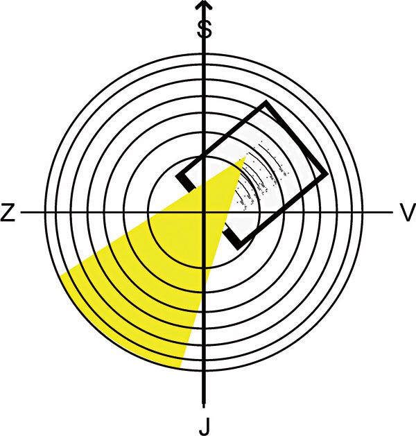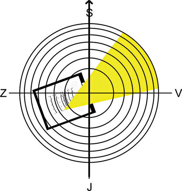 | Obr. 1 Rozloženie jasov na CIE zamračenej oblohe a ich rovnaký vplyv na rôzne orientované interiéry a) severovýchodná orientácia, b) juhozápadná orientácia |