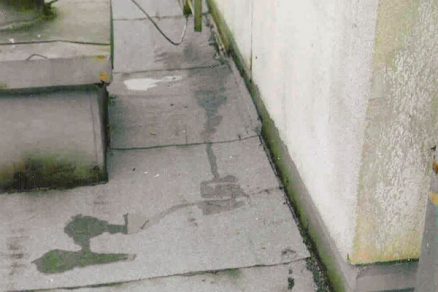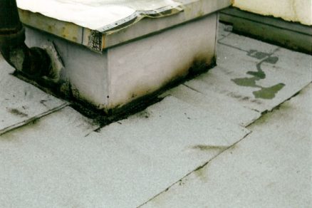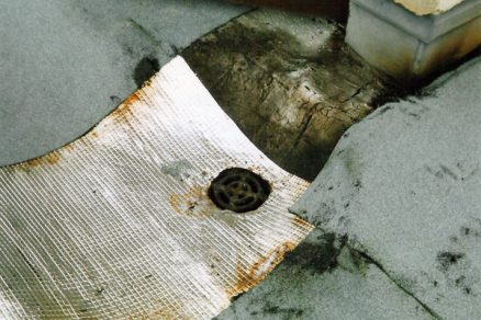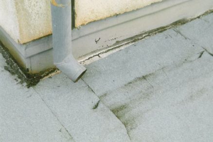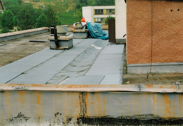 • rohož je sfúknutá do priestoru medzistrešného žľabu, upcháva prevetrávacie otvory pod žľabom a zamedzuje prevetrávaniu. V páse asi 1 200 mm pozdĺž medzistrešného žľabu je vlhkosť izolantu zvýšená na hodnoty 33 až 40 % objemovej vlhkosti. Zvýšenie vlhkosti v tejto časti strechy je dôsledkom kondenzácie uzavretej vodnej pary bez možnosti odvetrávania. V jarných a jesenných mesiacoch táto skondenzovaná voda presakuje do priestorov predsiení a kúpeľní bytov na poslednom podlaží. Presakovanie sa však nesprávne pripisuje poškodeniu strešného plášťa.