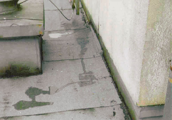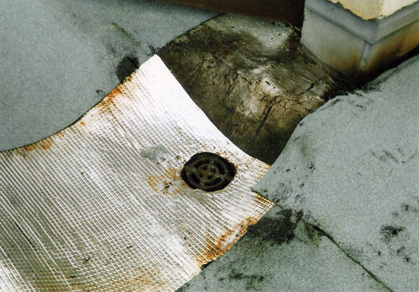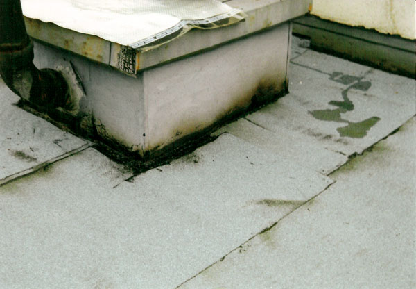 Pri otvorení sondy v tejto časti strechy možno zistiť, že polystyrén pôsobením dechtov v asfaltovaných pásoch a migráciou nadúvadiel zmizol. Nachádzajú sa tu len zvyšky s hrúbkou 40 až 45 mm a dutiny v polystyréne sú zvyčajne zavodnené.