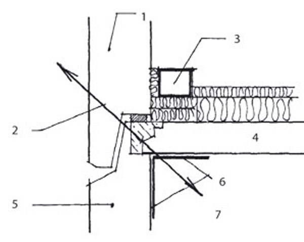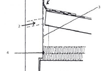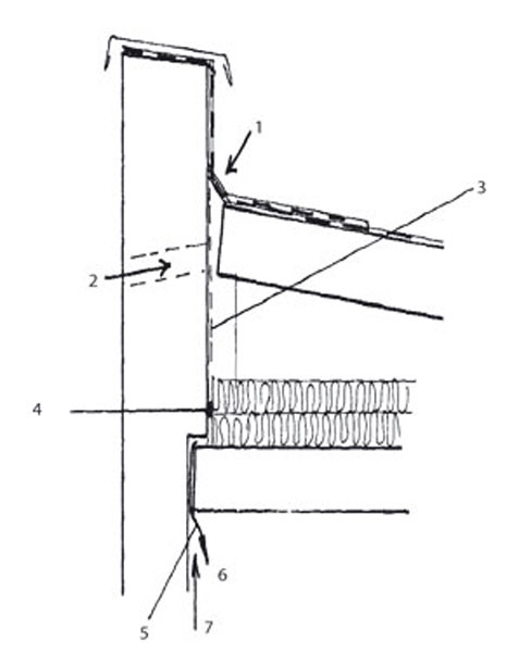 • Ochladzovaná medzera medzi spádovým strešným panelom POS, atikou a izoláciou, ktorá je k atike uložená netesno. Tento problém nastáva najmä pri pozdĺžnej atike. Dôsledkom je výtok kondenzátu do interiéru, ktorý sa chybne pripisuje poškodeniu strešného plášťa (obr. 1).