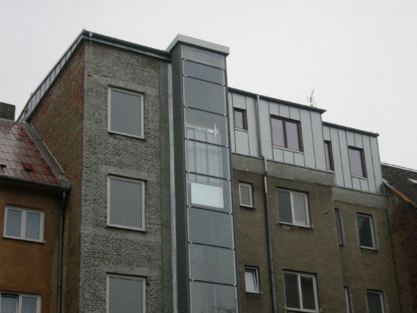 Stredisko sociálnej prevencie Olomouc, príspevková organizácia, je zariadenie sociálnych služieb zamerané na pomoc a podporu deťom, rodinám, manželským párom a ďalším osobám, ktoré sa nachádzajú v nepriaznivej životnej situácii. Architektonická kancelária Studio JKL bola v roku 2004 postavená pred neľahkú úlohu, a to vytvoriť nadstavbu celého podlažia strediska. Nemohla sa však využiť existujúca strešná konštrukcia budovy pre jej nevyhovujúcu pevnosť. Nutnosť postupného odbúravania krovu s priebežnou výstavbou novej konštrukcie – teda predovšetkým rýchlosť realizácie – bola jednou z najdôležitejších kritérií na výber nosnej konštrukcie na báze tenkostenných oceľových pozinkovaných profilov. Nosný systém je doplnený o tepelnú izoláciu na báze minerálnej vlny, parotesnú fóliu a sadrokartónové dosky na opláštenie.Nadstavba sa koncipovala ako jednoduchý kompaktný tvar so sedlovou strechou s minimálnym sklonom 5°, nová konštrukcia sa zdôraznila opláštenou plechovou fasádou a krytinou vo farbe strieborná metalíza.