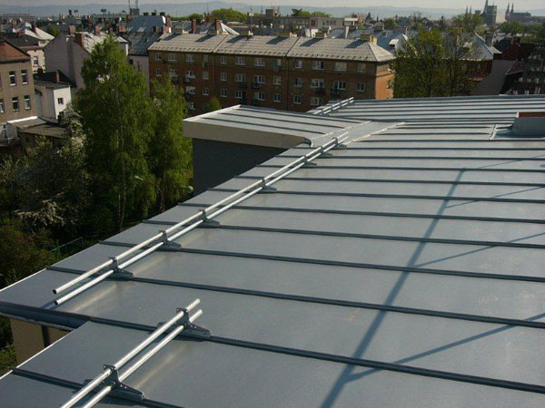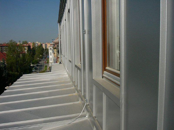 Bezúdržbová falcovaná krytina s povrchovou úpravou HB Polyester vo farbe strieborná metalíza.