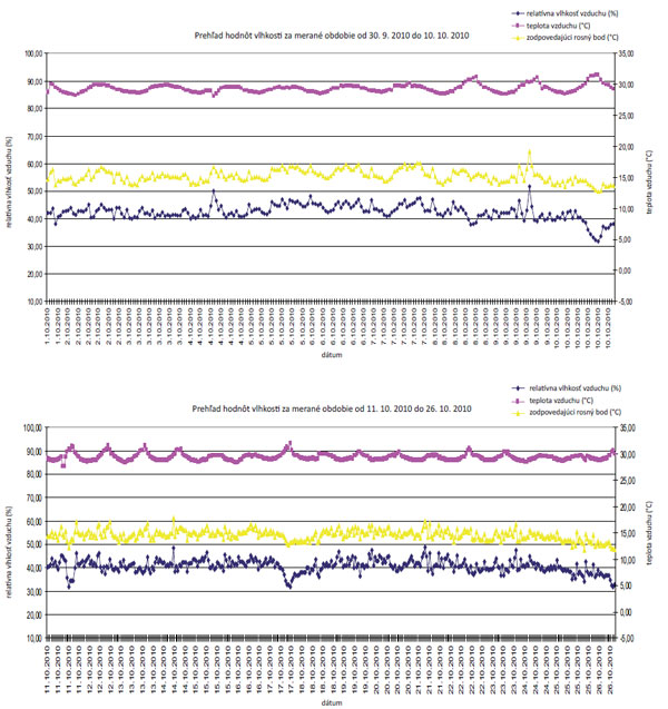 Obr. 7 Namerané hodnoty teplôt a vlhkosti vzduchu