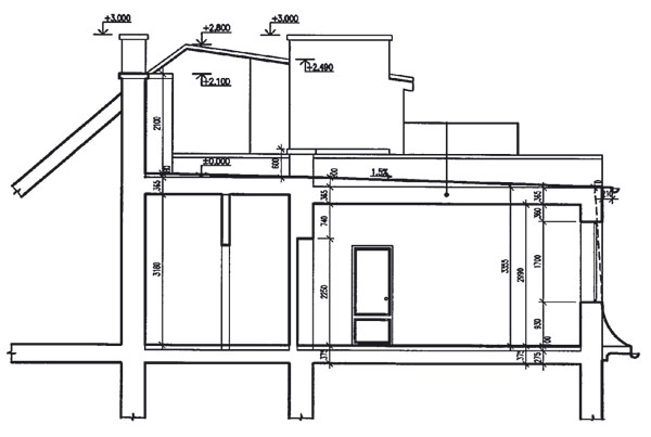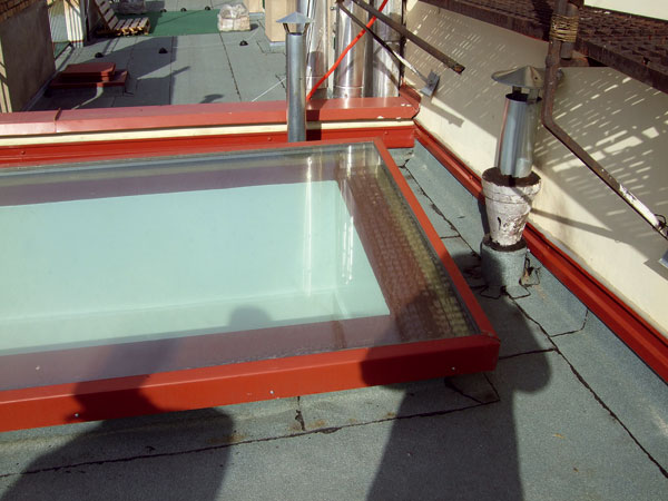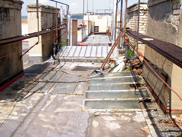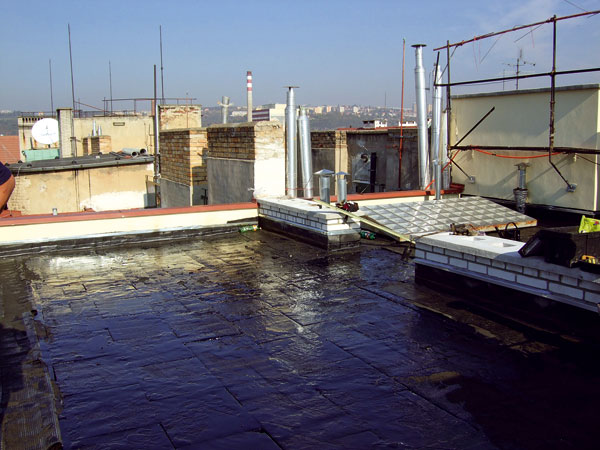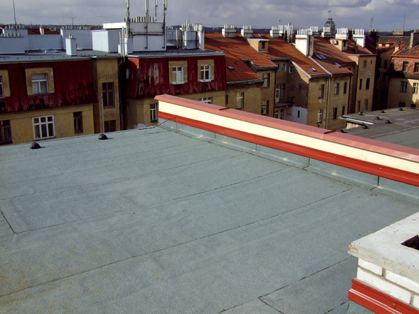 V rokoch 2006 až 2007 bola navrhnutá a dokončená rekonštrukcia plochej strechy nájomného domu z 20. rokov minulého storočia. Ide o objekt, v ktorom časť bytového domu situovaná do ulice má šikmú a časť situovaná do dvora plochú strechu. Krytina na plochej streche pozostávala z mnohých asfaltovaných pásov, aplikovaných v rozličných obdobiach vždy preto, aby sa počas životnosti celej strešnej skladby zamedzilo zatekaniu do interiéru objektu. Do podstrešia však stále zatekalo, preto bolo potrebné urobiť celkovú rekonštrukciu strešného plášťa.