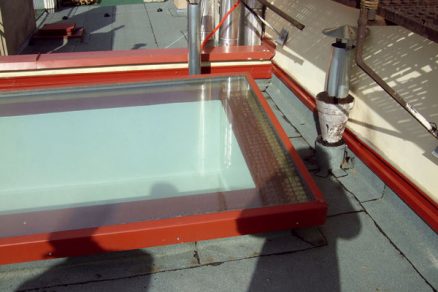 | Obr. 4: Pohľad na penové sklo s asfaltovým náterom – príprava pod krytinu | Obr. 5: Pohľad na svetlík | |