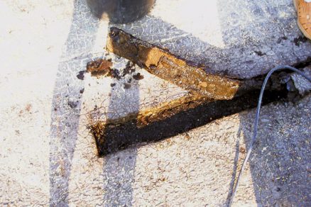 - krytina z asfaltových pásov rôzneho zloženia je pôvodná, opakovane doplňovaná a vyslúžená,