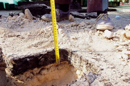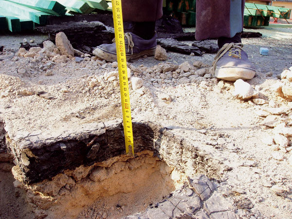 | Obr. 7: Overenie hrúbky pôvodnej krytiny | Obr. 8: Strešná sonda na overenie skladby strech |