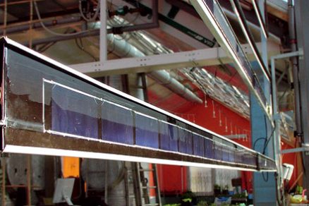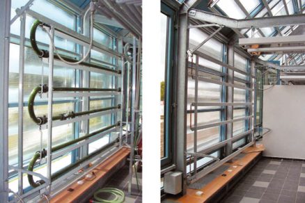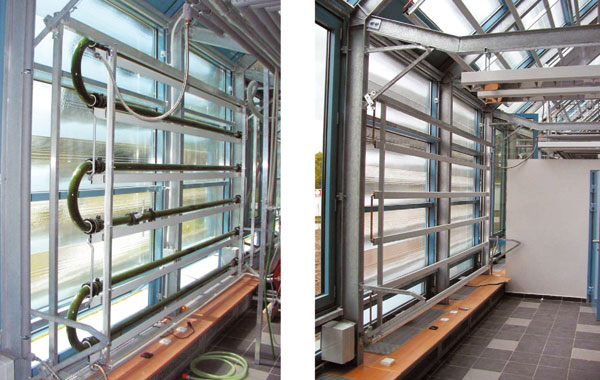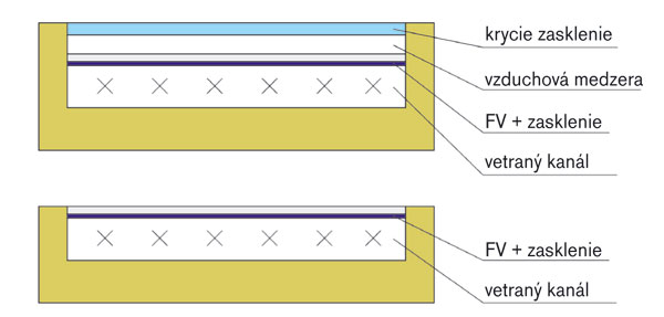 Kolektor s Fresnelovými šošovkami kombinovaný s kvapalinovým FV/T absorbérom je ďalším krokom vpred pre súčasné zabezpečenie prirodzeného osvetlenia, regulácie vnútornej teploty a výroby elektrickej energie a tepla pre potreby budovy. Koncentrácia slnečného žiarenia môže pri dobrej kvalite šošoviek zvýšiť účinnosť FV článkov a kvapalinové chladenie obmedziť prehrievanie a negatívny vplyv teploty na elektrický výkon. Solárny FV/T kolektor s Fresnelovými šošovkami sa sprevádzkoval v experimentálnom skleníku v juhočeskom mestečku Třeboň v roku 2007 (obr. 6).