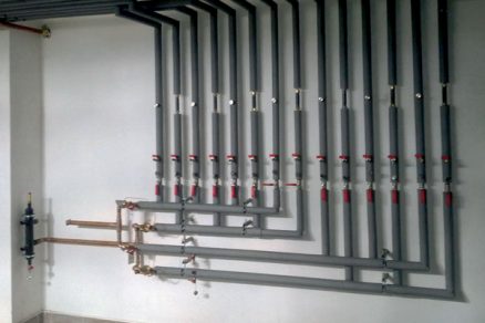 Na rozdeľovač a zberač vetvy 1 sú napojené byty 1, 3, 5 a spoločné priestory, pričom rozdeľovač a zberač vetvy 2 je napojený na byty číslo 2, 4 a 6. Na každej vetve sú inštalované uzatváracie a vypúšťacie armatúry, teplomery a merače tepla.
