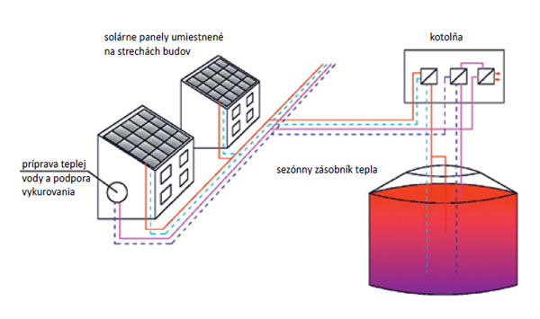 Obr. 3 Zjednodušená schéma sezónnej akumulácie tepla