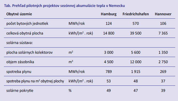 V prípade vyšších tepelných požiadaviek sa práve sezónna akumulácia tepla s veľkokapacitnými zásobníkmi stáva veľmi zaujímavým riešením, vhodným na pokrytie tepelných potrieb pre mestské časti, sídliská, školy a nemocnice (tab.).