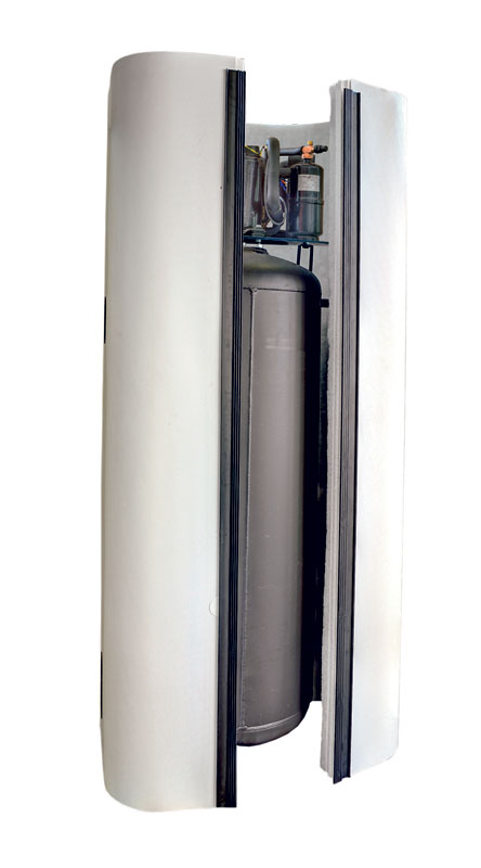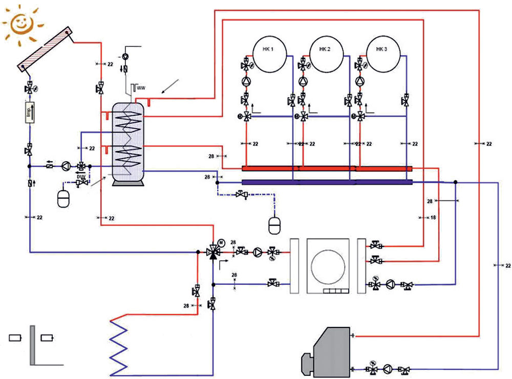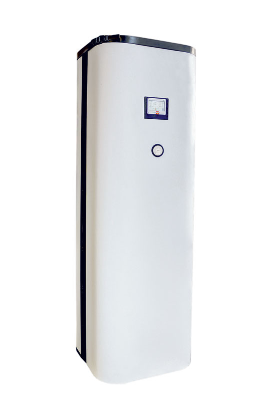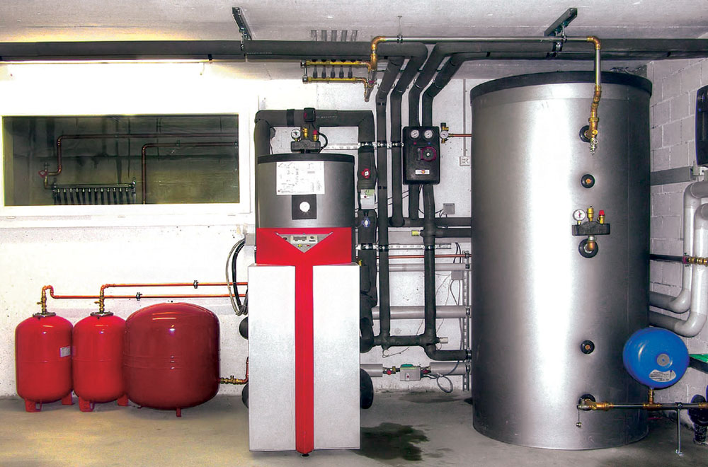 Na obr. 2 je strojovňa takého systému s hygienickým akumulátorom tepla s objemom 1 000 l a s tepelným čerpadlom s výkonom 12 kW.