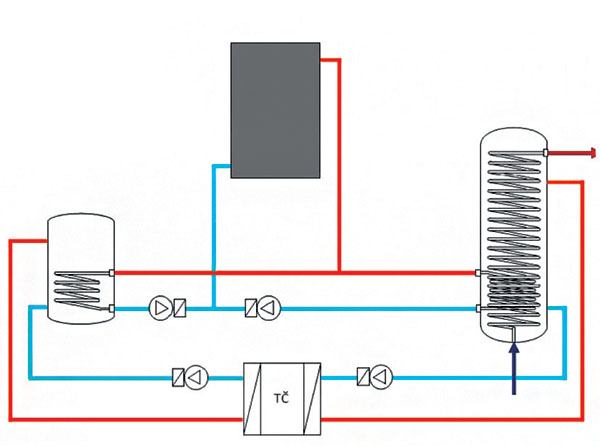 | Obr. 4 Tepelné čerpadlo s malým zásobníkom tepla | |