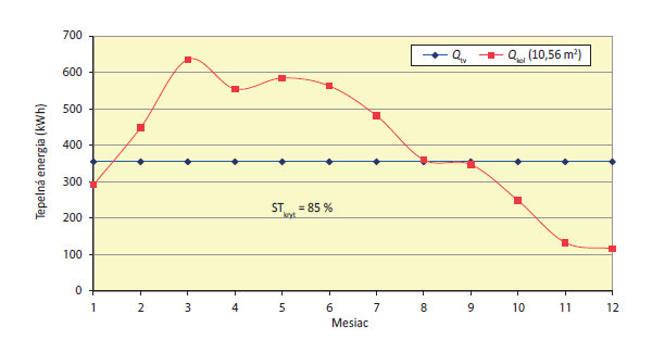 Teplo získané kolektorom a potreba tepla na prípravu TV