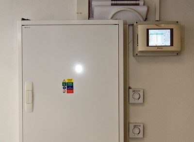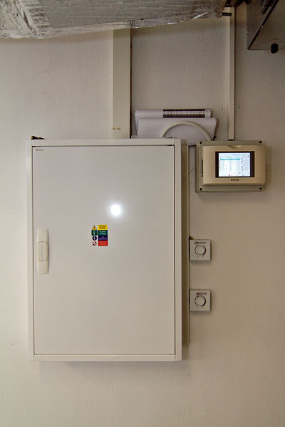 - zjednodušenie rozvodného systému – oceľové potrubia na prepravu vykurovacej, resp. chladiacej vody sa nahradili medenými rozvodmi na chladivo R410A; tieto rozvody majú z princípu menšie dimenzie, čo značne zjednodušuje a zrýchľuje montáž,
