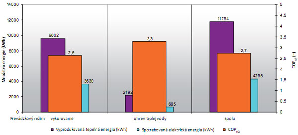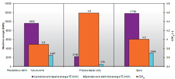 Hodnoty COP tepelného čerpadla sa stanovili meraním pre jednotlivé prevádzkové režimy: