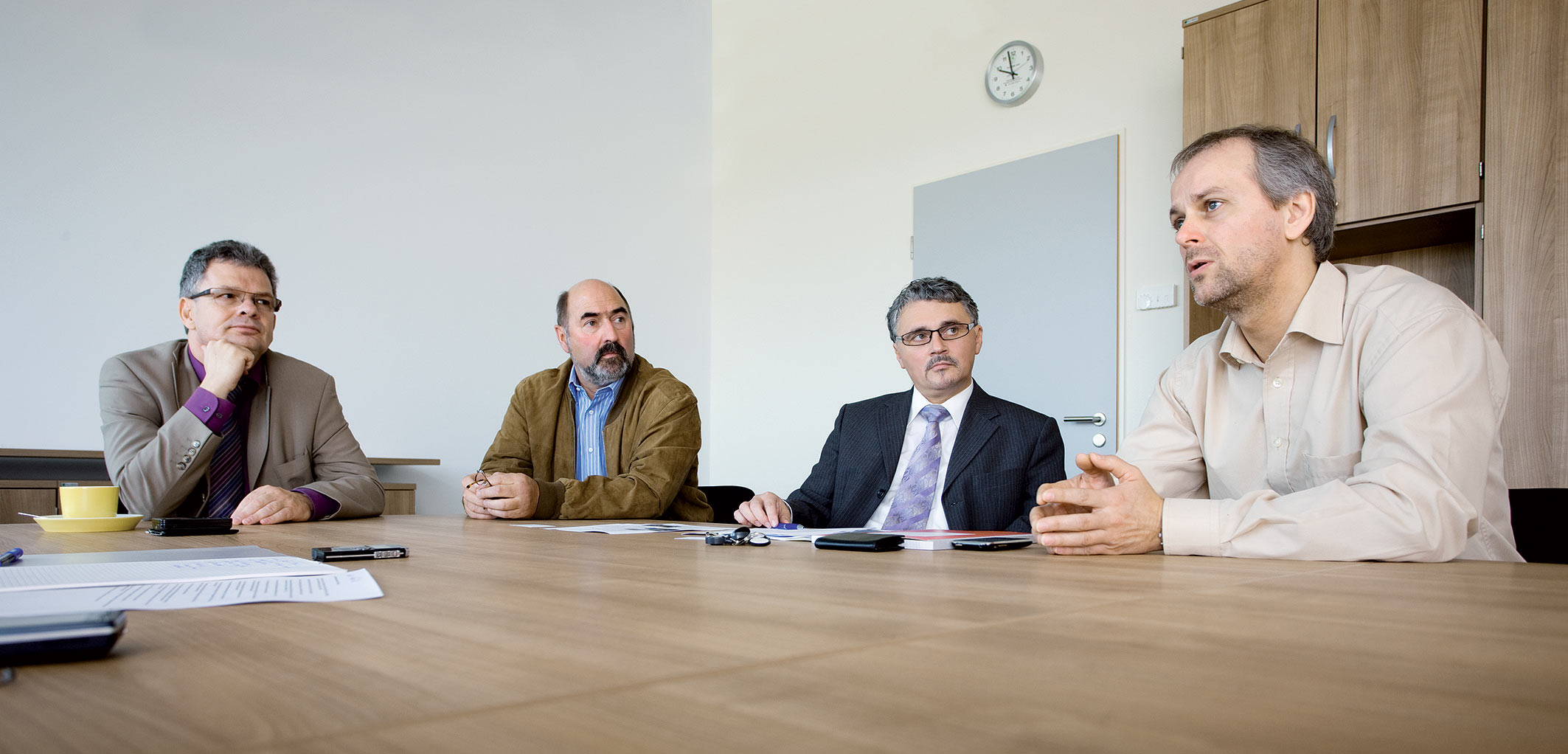 Energeticky účinný systém vykurovania a chladenia „Chladiaca funkcia tepelného čerpadla nás presvedčila“ Zľava doprava: stavebník Klaus Lipinski; Dipl. Ing. Alex Neuwirth, SHK – projekčná a inštalačná spoločnosť Neuwirth, Moers; Walter Beckmeier z firmy Plakon a Theodor Meiners z duisburského architektonického štúdia Falk Aké boli priority stavebníka pri návrhu budovy? Krátke prevádzkové spojenia, vysoká funkčnosť, možnosti prestavby a dostavby a pochopiteľne aj racionálna energetická koncepcia. Čo to znamená z hľadiska stavebného materiálu? Vychádzali sme z toho, že potreba vykurovania bude nižšia, keďže na jednotlivých pracoviskách predpokladáme pomerne vysokú produkciu tepla z elektronických zariadení. Aby sme ušetrili energiu, zvýšili sme izoláciu stavebných prvkov: podlaha má dvojnásobnú izoláciu, rovnako strop najvyššieho poschodia, ktorý zároveň tvorí plochú strechu. Na vonkajších stenách budovy je 16 cm hrubá izolačná vrstva. Optimálnu klimatizáciu zabezpečujú múry z vápennopieskových tvárnic, ktoré majú vynikajúce akumulačné vlastnosti a schopnosť pohlcovať hluk. Pri návrhu fasády sme sa rozhodli pre tepelnoizolačný systém zo styroporu. Plastové okná s vysokou pevnosťou majú takisto výborné tepelnoizolačné a akustické vlastnosti. Výber stavebných materiálov je zárukou ušetrenia nákladov na vykurovanie. Uvažovali ste aj v tomto prípade o tepelnom čerpadle? Áno. Rozhodujúcim argumentom v jeho prospech bolo, že tepelné čerpadlo od firmy Stiebel Eltron sa nevyužíva iba na vykurovanie. Presvedčila nás napokon možnosť, že toto tepelné čerpadlo môžeme efektívne a s nízkymi nákladmi využiť aj na chladenie. Umožňuje totiž do systému chladenia začleniť schopnosť chladenia, ktorú majú zemné sondy. A pre firmu Plakon je funkcia chladenia významná po celý rok. Spolu so spoločnosťou Neuwirth z Moersu, ktorá sa zaoberá sanitárnymi zariadeniami, vykurovacími systémami a klimatizáciou, sme navrhli komplexný systém vykurovania a klimatizácie. |