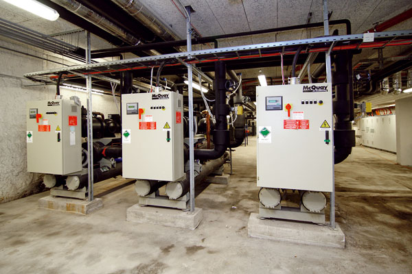 V prevádzke sú súčasne pripravené všetky tri tepelné čerpadlá, pričom jedno čerpadlo je vždy rezervné. Každé tepelné čerpadlo je riadené autonómne, s prepojením na centrálny riadiaci systém celého objektu.