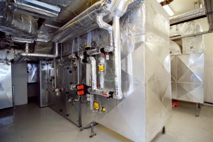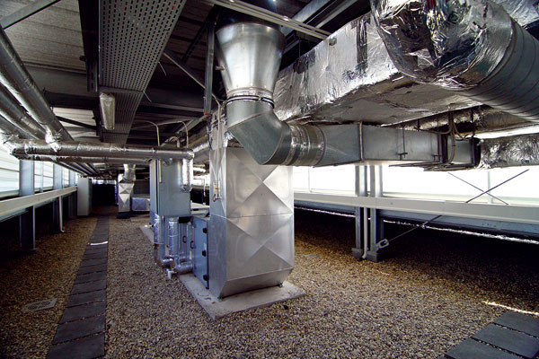 | Vzduchotechnická centrála v 2. suteréne (pre hlavný vstup a archívy v suterénoch) | Vzduchotechnická jednotka na streche (pre priestory pred výťahmi na poschodiach) |