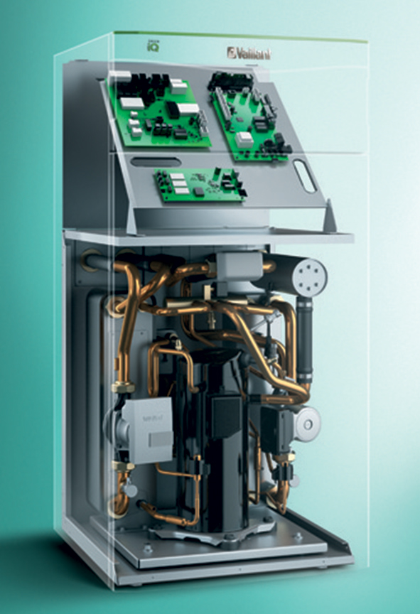 Novú zostavu tvoria dve tepelné čerpadlá typu zem – voda, solárny systém a kondenzačný kotol. Zariadenia spolupracujú s vrstveným multifunkčným akumulačným zásobníkom Vaillant allSTOR exclusive (s objemom 1 500 l), ktorý funguje ako tepelná centrála na ukladanie energie z rôznych zdrojov. V zásobníku sa dodané teplo akumuluje a podľa potreby sa transformuje buď na vykurovanie, alebo na prípravu teplej vody.