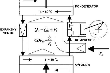 Obr. 1 Schéma zapojenia komponentov a funkcie kompresorového tepelného čerpadla
