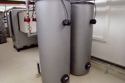 | Tepelné čerpadlo typu vzduch – voda AlphainnoTec | Vzadu je tepelné čerpadlo AIT LW330 M-I, vpredu príprava TV v dvoch zásobníkoch AIT WWS507. |