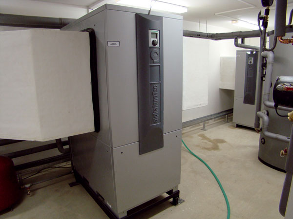 Potreba tepla pre daný objekt je podľa projektovej dokumentácie 196 kW. Celý objekt je rozdelený na dve časti, v ktorých sa zrealizovali dve strojovne. V každej sú tri tepelné čerpadlá typu vzduch – voda AlphainnoTec LW330 M-I s výkonom 33 kW a výkonovým číslom COP = 3,9, čo je pri takomto veľkom výkone vynikajúci koeficient. Nasávanie a výfuk vzduchu sa realizuje pomocou vzduchotechnických kanálov vyrobených z tepelnej izolácie, čo minimalizuje hlučnosť strojovne, ktorá sa tak mohla umiestniť priamo pod bytovou jednotkou.