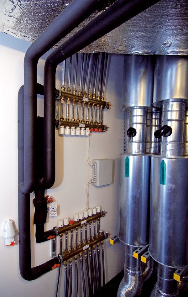 Dynamickým zdrojom sú podlahové konvektory s regulačnými ventilmi so servopohonom ovládaným z priestorového regulátora.
