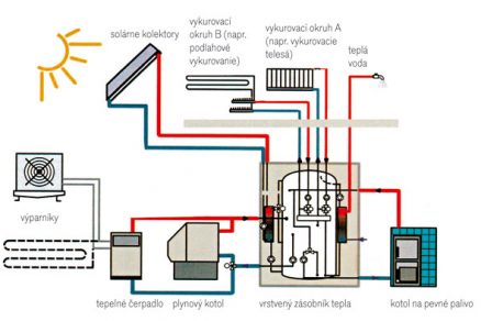 Zásobovanie rodinných domov teplom sa v súčasnosti zvyčajne zabezpečuje kotlom na zemný plyn. V tom prípade nie je potrebná akumulácia tepla na vykurovanie, nanajvýš zásobník teplej vody. Prechod od takého dlhodobo neudržateľného zásobovania je teoreticky jednoduchý – kotol na zemný plyn sa nahradí kotlom na pevné biopalivo (pelety, brikety, štiepky, palivové drevo). V skutočnosti je však nevyhnutné šetriť aj zdroje biomasy, aby nedošlo k porušeniu rovnováhy medzi jej spotrebou a tvorbou. Okrem toho sa biopalivá síce považujú z hľadiska CO2 za neutrálne, ich spaľovanie však zaťažuje životné prostredie niektorými škodlivinami viac než spaľovanie zemného plynu. Preto by sa biomasa ako hlavný zdroj tepla mala kombinovať s iným obnoviteľným zdrojom.