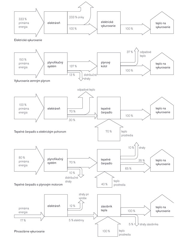Obr. 2: Porovnanie niektorých spôsobov vykurovania