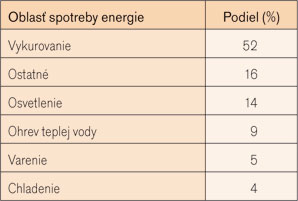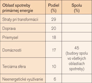 V EÚ sa budovy podieľajú na celkovej spotrebe primárnej energie významnou hodnotou vo výške až okolo 45 % (tab. 1) [1].