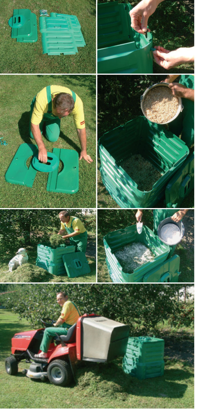 2. Jednotlivé diely zostavujeme podľa priloženého návodu, je to veľmi jednoduché. Hotový kompostér je navyše veľmi ľahký, takže ho podľa potreby bez problémov kdekoľvek prenesieme.