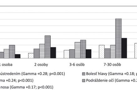 Výskyt symptómov syndrómu chorých budov sa so vzrastajúcim počtom osôb v kancelárii zvyšoval, čím sa potvrdili výsledky ďalších štúdií (napr. [4], [18], [19]). Konkrétne dôvody zvyšovania výskytu týchto symptómov môžu byť len predmetom hypotéz, no fakt, že sa so zväčšovaním počtu osôb v kancelárii zvyšujú, je preukázaný.