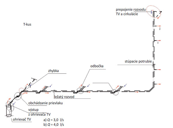 - rýchlosť prúdenia vody (vhodná rýchlosť je od 1,0 do 2,5 m/s v závislosti od materiálu potrubia),
