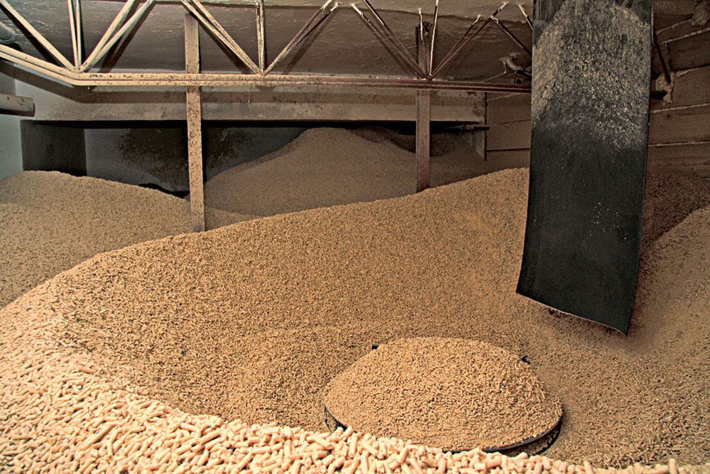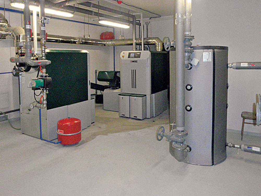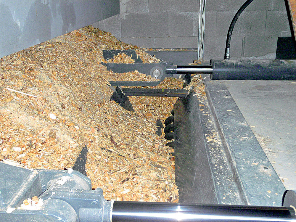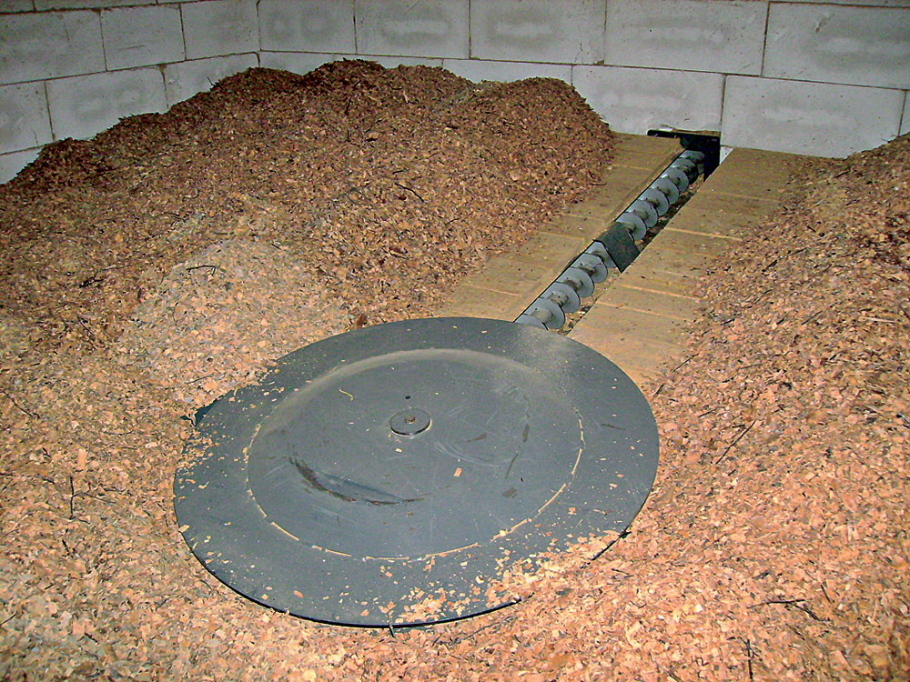 V bytových domoch prevládajú kotolne na pelety (obr. 5). Naopak, v prípade kotolní slúžiacich na centralizované zásobovanie teplom sa najčastejšie využíva ako palivo drevná štiepka s väčšou frakciou (G50, G100) a s vlhkosťou až do 50 % (obr. 6a). V skladoch paliva sa najčastejšie realizujú takzvané posuvné podlahy (obr. 6b). V bytových domoch treba správne vyriešiť efektívne plnenie skladu paliva. Okrem klasických nakladačov sa používajú aj automatické plniace systémy pozostávajúce z násypky paliva a dopravného systému na plnenie skladu, ktoré umožňujú optimálne naplniť sklad.