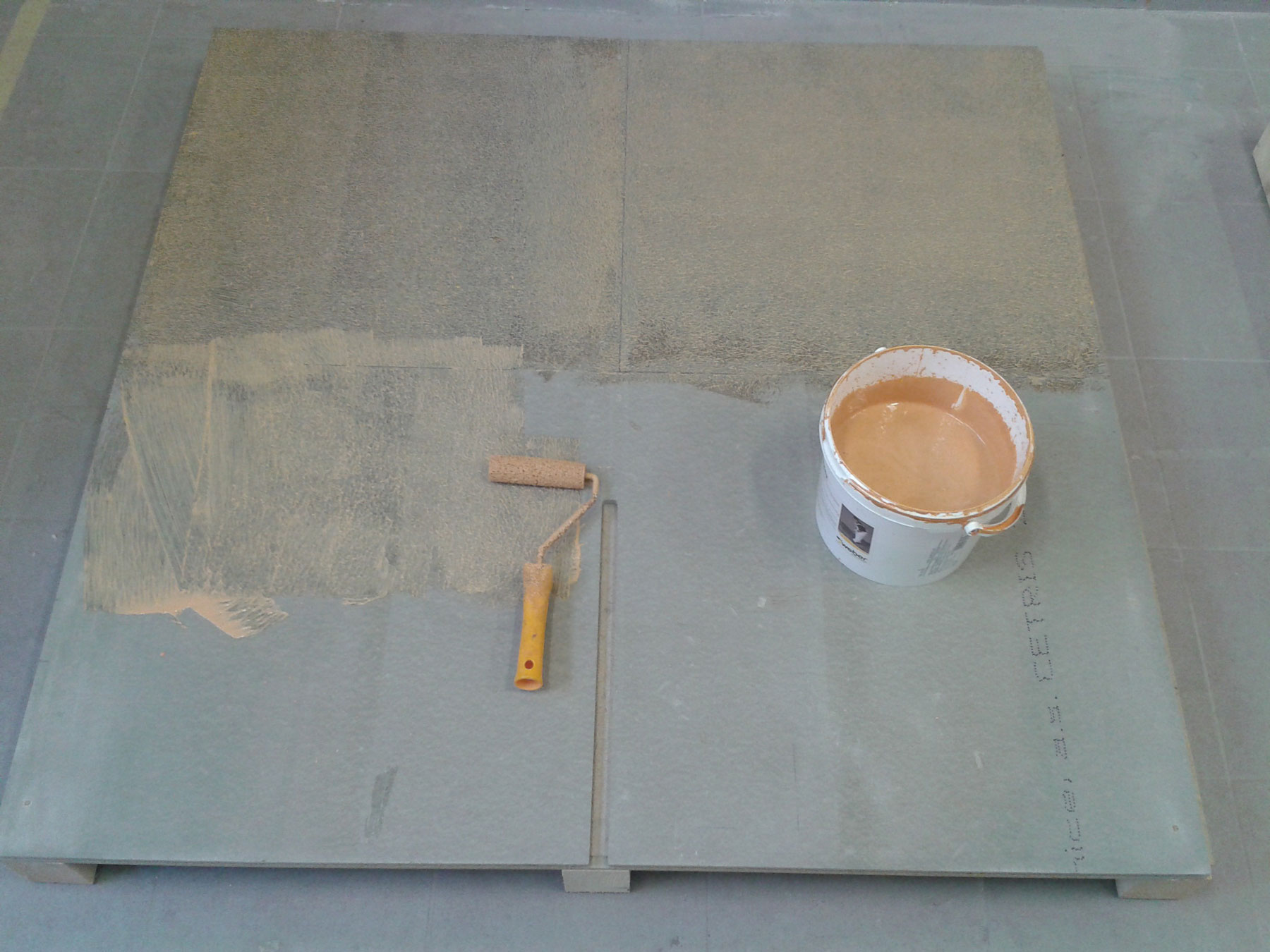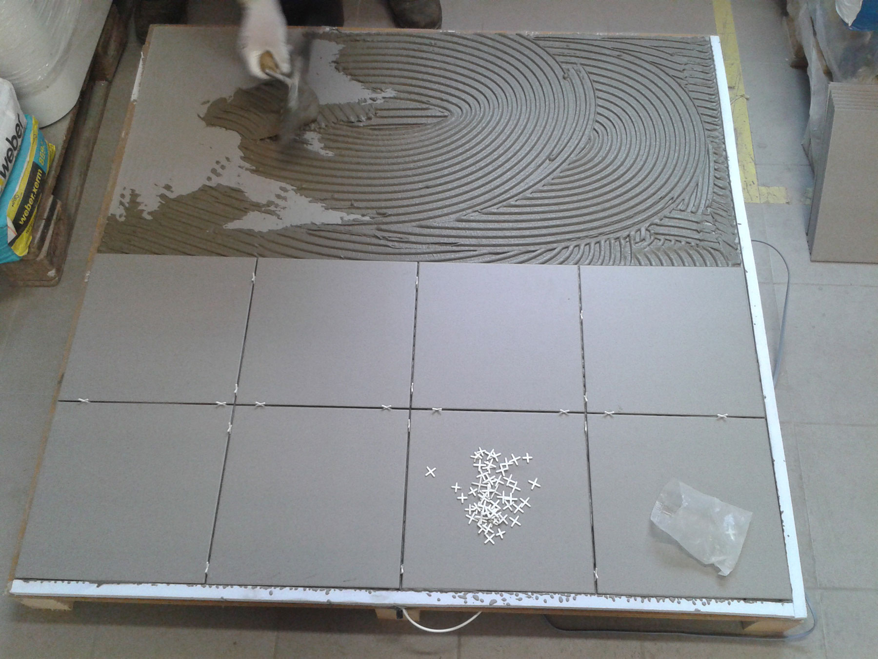 Po vyzretí stierky (min. 24 hod. v prípade kladenia dlažby, min. 72 hod. v prípade kladenia vinylu) sa celý podklad napenetruje penetráciou weber.podklad A. V priestoroch s výskytom vody (napr. v kúpeľniach) je nutné aplikovať hydroizolačnú vrstvu – napríklad polymércementovú hydroizolačnú stierku Terizol. Hneď ako uplynie čas zrenia, môžeme pristúpiť ku kladeniu keramickej dlažby do lepidla na dlažbu weber.for duoflex. Škáry medzi dlaždicami sa následne vyplnia škárovacou hmotou weber.color comfort.
