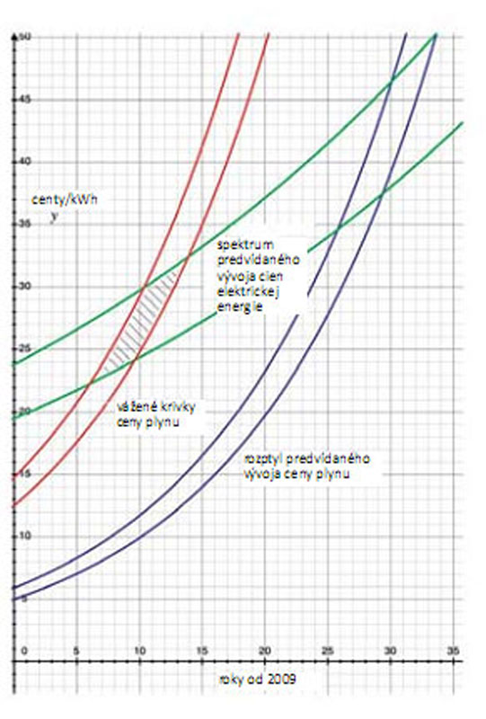 Ceny elektrickej energie narástli za posledných 10 rokov od liberalizácie trhov priemerne o 2,25 % za rok a ceny plynu o približne 7,1 % za rok. Väzba medzi cenami plynu a nafty sa v dohľadnom čase zachová a obe fosílne palivá budú v budúcnosti menej dostupné. Za nárast ceny za elektrickú energiu môžu zo 40 % štátne odvody, navyše sa začína prejavovať znižovanie nákladov v dôsledku výroby obnoviteľnej elektrickej energie. Preto možno veľmi pravdepodobne očakávať zachovanie tohto rozdielneho vývoja aj do budúcnosti – teda, že cena plynu bude aj naďalej rásť rýchlejšie než cena elektrickej energie.