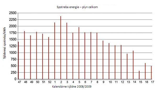 Obr. 5 Týždenná spotreba energie – vykurovanie plynom a vykurovacími telesami