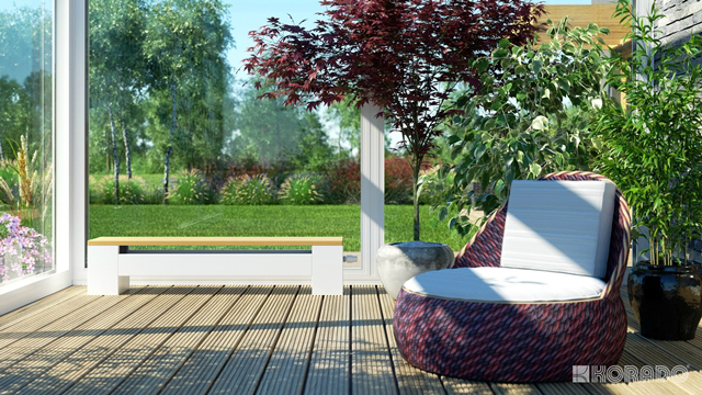 V celom portfóliu lavicových konvektorov s prirodzenou konvekciou sú teraz použité inovované výmenníky s novým dizajnom hliníkových lamiel, ktorý zaručuje vyšší výkon. Stále sú v ponuke tri modelové rady, a to Exclusive s hliníkovou mriežkou, Economic s razenou mriežkou, ktorá je súčasťou opláštenia, a lavice KORALINE LD s doskou, keď sú na výber tri druhy dreva. Popri klasickom buku a dube je v ponuke aj americký orech, ktorý je svojimi vlastnosťami vhodný aj do vlhkejšieho prostredia, napr. zimných záhrad alebo aj vnútorných bazénov.