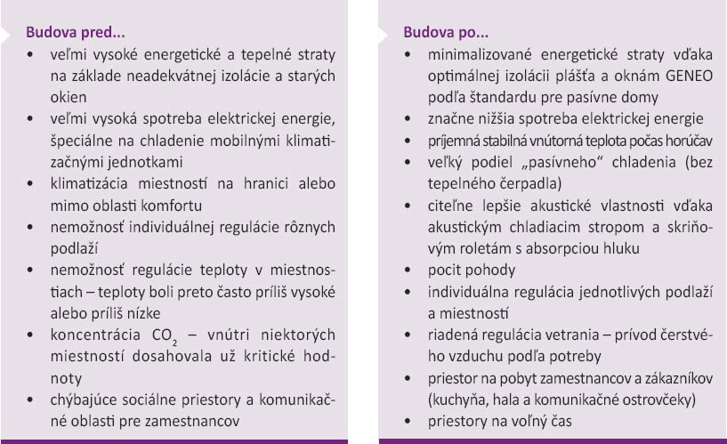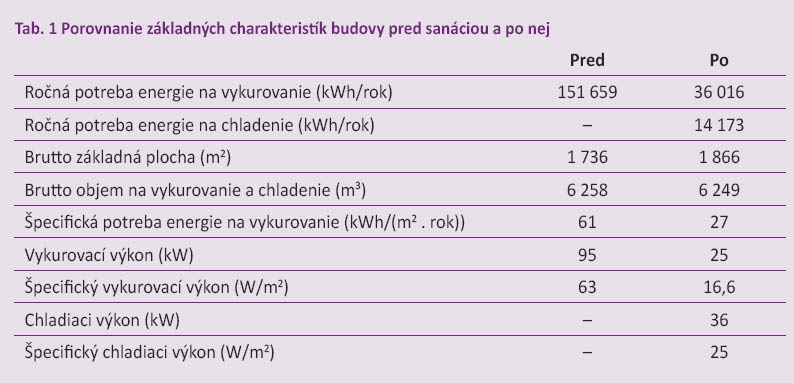 Porovnanie základných charakteristík budovy pred sanáciou a po nej je uvedené v tab. 1.