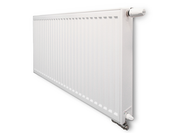 (Obr. 4) Radiátor RADIK s riadeným natekaním sa na pohľad líši umiestnením rozdeľovacieho ventilu, ktorý sa nachádza v spodnej časti telesa na strane s termostatickým ventilom.