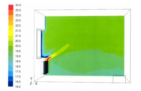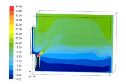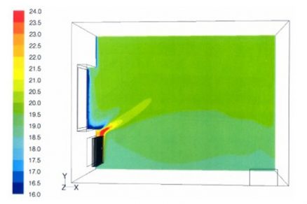 Svojou konštrukciou navyše lepšie rozloží priebeh teploty od podlahy smerom k stropu, ako vidieť na nasledujúcich obrázkoch.