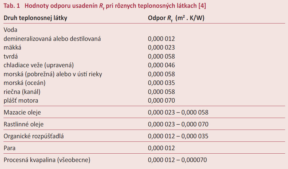 kde UR je súčiniteľ prechodu tepla zahŕňajúci vplyv súčiniteľa zanášania fR (odporu usadeniny Rf) (W/(m2 . K)),