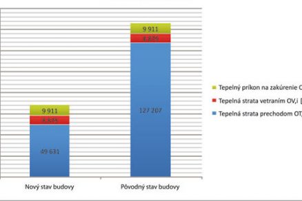 Obr. 1: Porovnanie tepelných strát budovy v novom stave a v pôvodnom stave