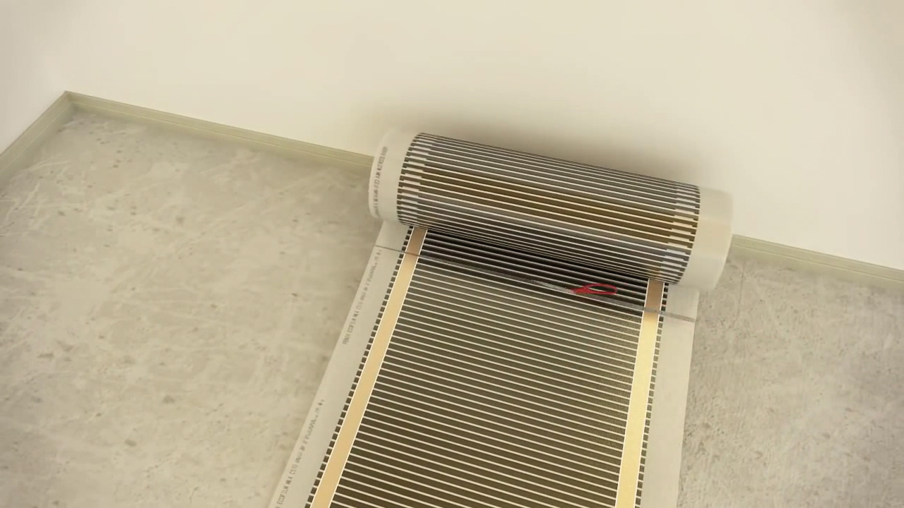 Pripravený zvinutý pás vykurovacej fólie sa čiastočne odvinie a za nevykurovacie okraje sa pripevní približne 1 m pásu. Následne sa fólia napne, vyrovná, a aby sa zabránilo jej spätnej deformácii, pripevní sa za nevykurovacie okraje na CD profily sadrokartónovej podkonštrukcie.