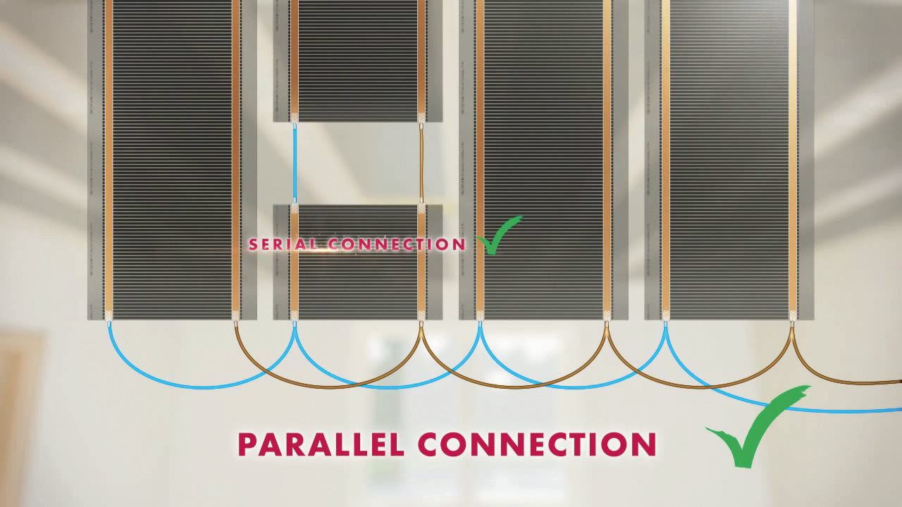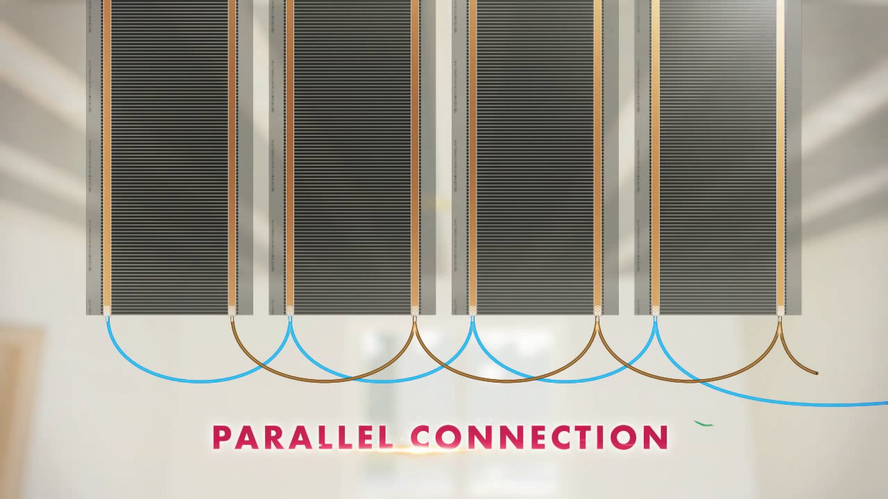 Medené pásky s postriebrením sú medzi zbernicami zapojené paralelne a je medzi nimi medzera 10 mm, preto je možné fólie strihať na ľubovoľné dĺžky a napriek tomu je plošný príkon aj prevádzkové napájanie stále rovnaké.