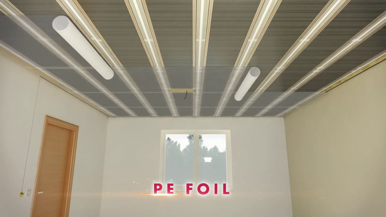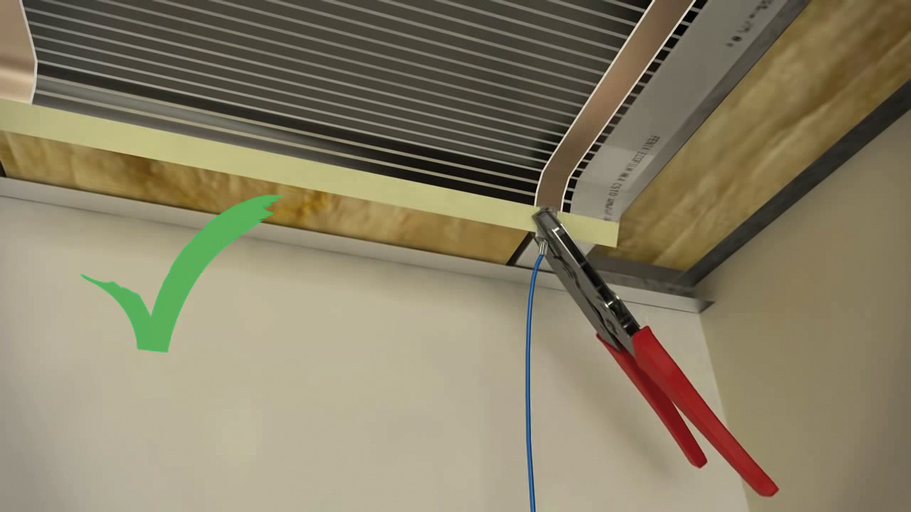 Tepelná izolácia by mala pritláčať stropnú vykurovaciu fóliu na sadrokartónový podhľad, aby bol prechod tepla čo najväčší. To znamená, že medzi vykurovacou fóliou a tepelnou izoláciou nesmie byť vzduchová medzera, pásy fólie by nemali byť zvlnené, so záhybmi alebo prekrytiami.