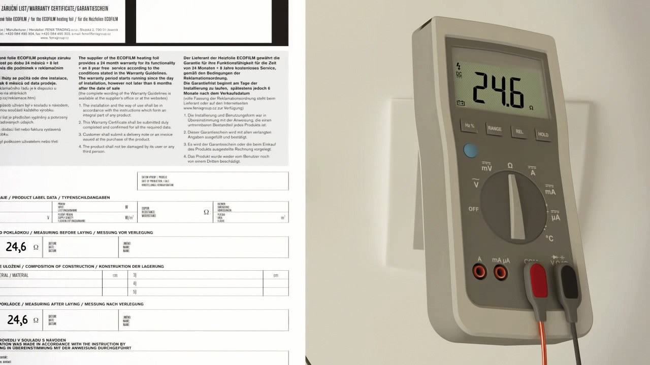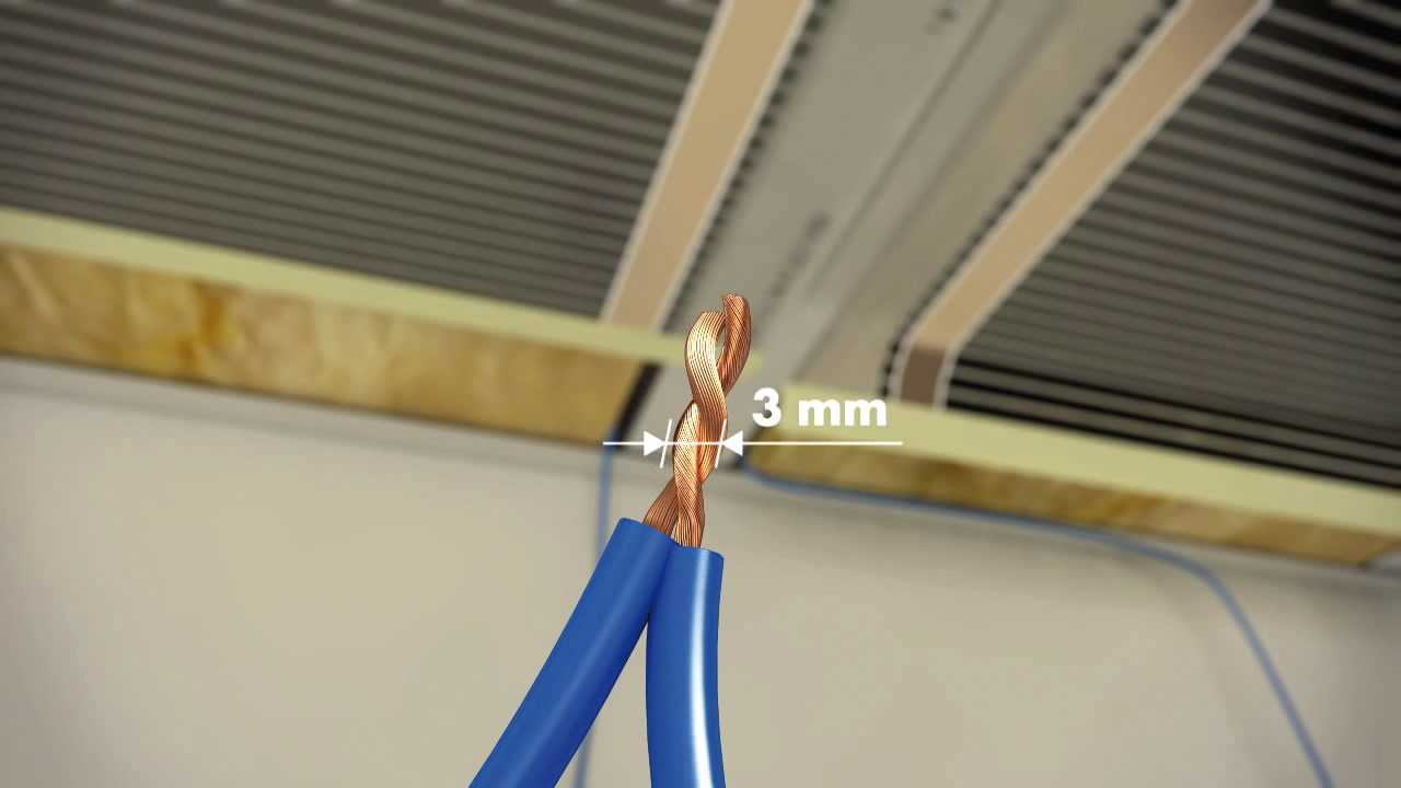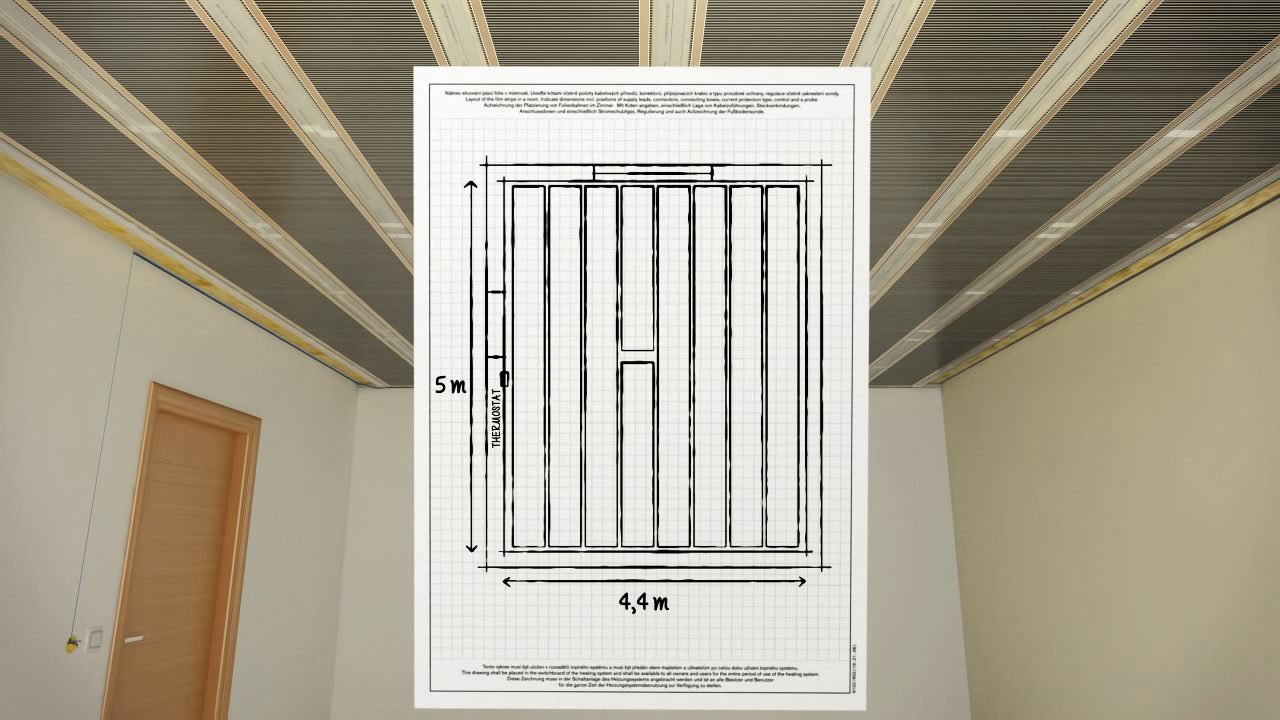 Fólia sa rozvinie na čistom a rovnom podklade. Rozmeria sa podľa rozmerov stropnej konštrukcie. Jednotlivé pásy sa nastrihajú podľa predchádzajúceho rozmerania nožnicami alebo sa odstrihnú podľa rovnej hrany, vždy kolmo na pozdĺžnu os fólie (tzn. kolmo na vnútornú svorkovnicu vodičov).