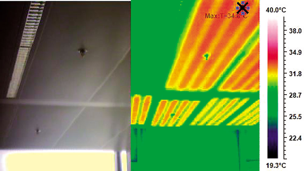 Na obr. 3 je zachytený strop jednej z kancelárií spolu s termovíznou snímkou.